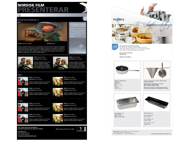 Nyhetsbrev för Nordisk Film och Patina.
