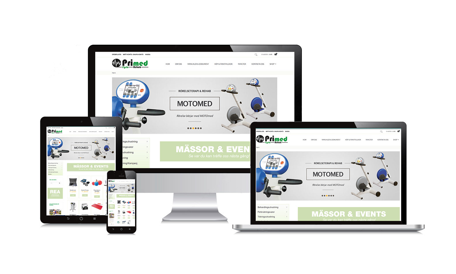 Webbsida med integrerad shop för företaget Primed AB. Grafisk form och utveckling.